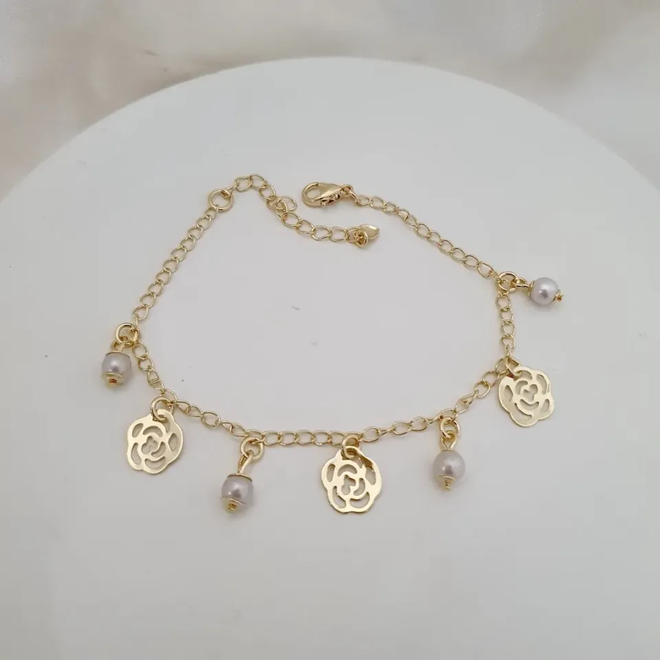 Pulseira flor rosa e pérola