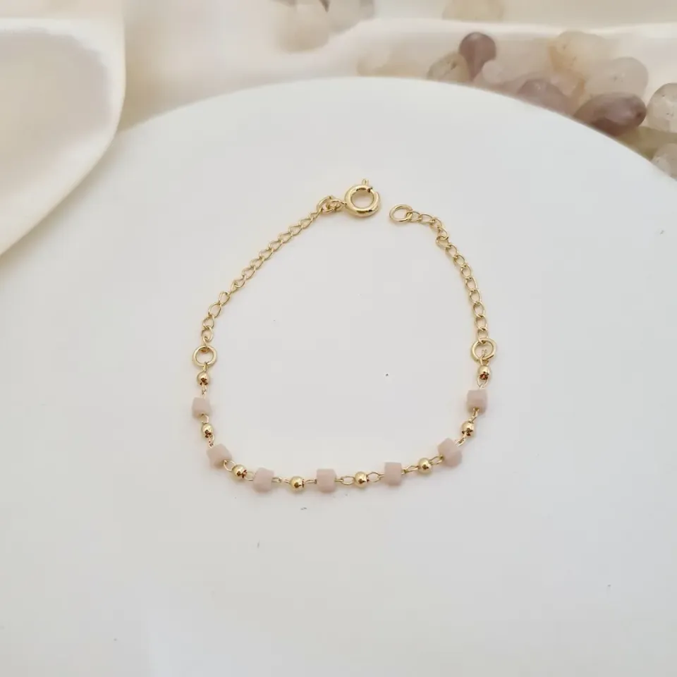 Pulseira infantil pedrinhas quadrado rosa
