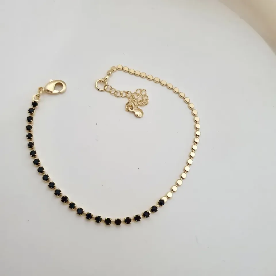 Pulseira metade cristal preto e metade bolinha