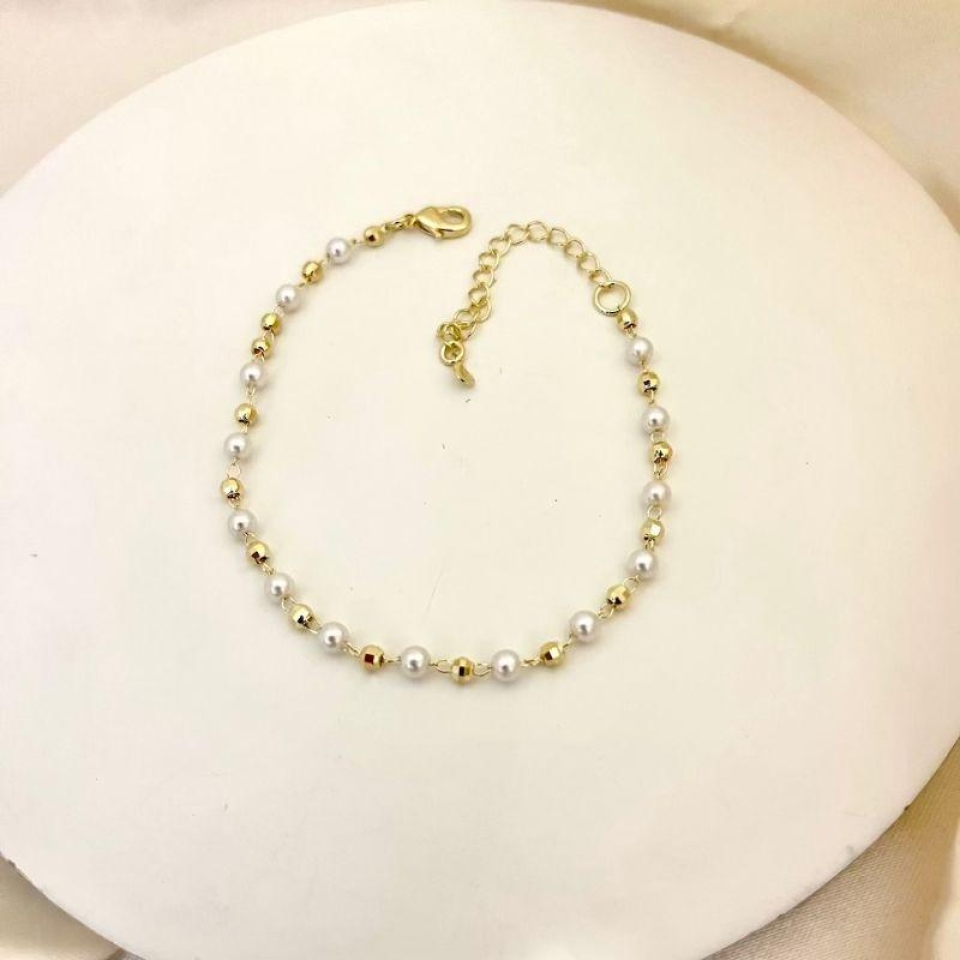Pulseira perolas e bolinha diamantada
