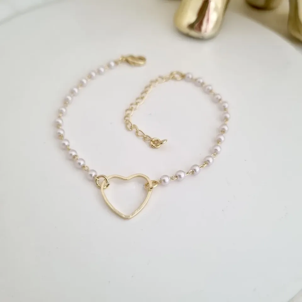 Pulseira pérolas e coração