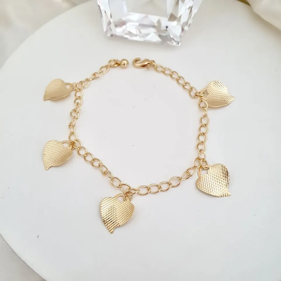 Pulseira pingentes corações detalhe diamantado