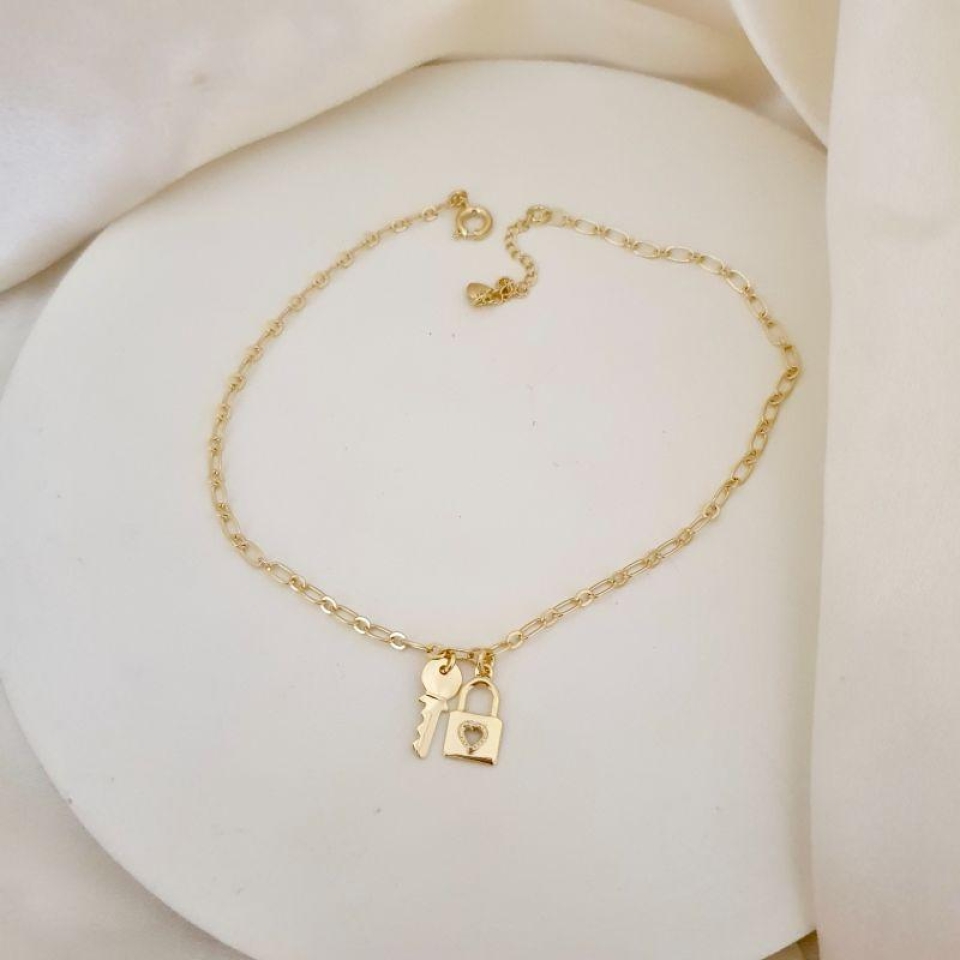 Tornozeleira pingentes cadeado e chave